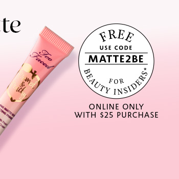 | *Enter promotion code MATTE2BE in the promotion code box at checkout to receive a trial size, free with any online merchandise purchase of $25 USD or more. Valid while supplies last; quantities are limited. Not valid on previous purchases or purchases of eGift certificates or gift cards. Offer not available in retail stores, Sephora inside JCPenney stores, or on jcp.com. Cannot be used in conjunction with other promotion codes. This offer is subject to change, alteration, or termination by Sephora at its sole discretion at any time. | |