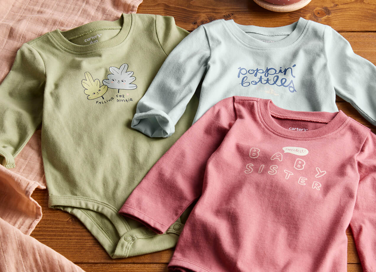 In-store promotions valid only in Carter's retail stores in the U.S. and Puerto Rico (excluding Barceloneta stores). Online promotions valid at carters.com. Percent-off savings based on MSRP. Online prices, promotions and selection may differ from those in our retail stores. Not valid for cash. No adjustments on previous purchases. Available while supplies last. Carter's reserves the right to modify or discontinue these promotions at any time.