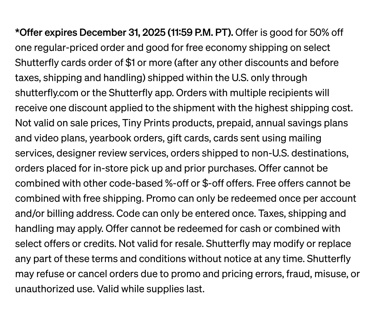 Send holiday cheer to everyone on your list with this special offer from Shutterfly!